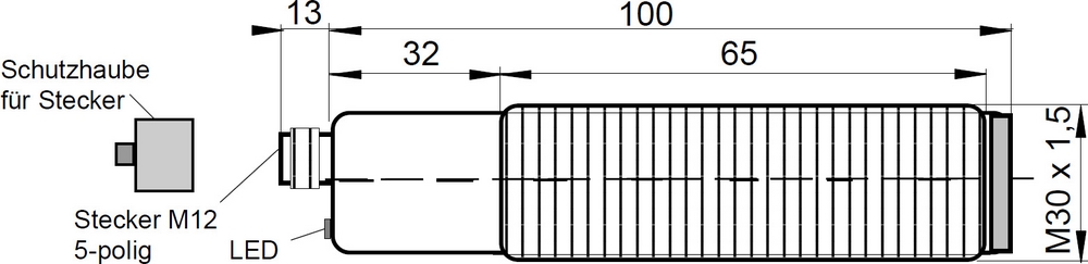 IB30C666,Inductive sensor M30x1,5/113long,security sensor, 24V DC,2x70mA,Sn:10,pnp,M12-plug 5pol, IPF ELECTRONIC