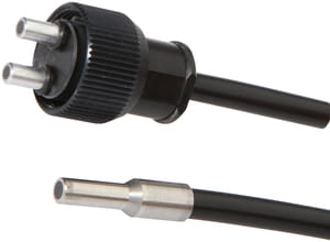 Fiber optics in combination with the appropriate fiber optic amplifier function as contactless and wear-free position switches that can also be used in harsh environmental conditions. They detect objects independent of their characteristics (e.g., shape, color, surface structure, material). Because the ends and heads of the fiber optics have small dimensions and the fiber optics are flexible, very elegant solutions can be created for detecting objects in places that are difficult to access. Fiber optics can be used without special precautions in potentially explosive areas and in zones with electrical and/or magnetic fields (high-voltage installations, electrical welding equipment) as their function is not thereby affected. Fiber optics are available in versions for implementing the function as through-beam sensor or diffuse reflection sensor.