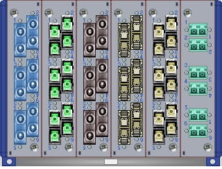| module 1 | Single fiber module with 6 ST OS2 duplex adapters (blue) |