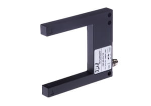 Special design of through-beam sensor. Transmitter and receiver are located in the fork or angular limbs and are perfectly aligned to each other.