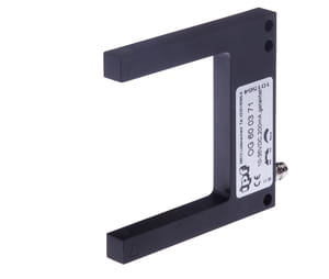 Special design of through-beam sensor. Transmitter and receiver are located in the fork or angular limbs and are perfectly aligned to each other.