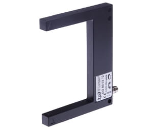 Special design of through-beam sensor. Transmitter and receiver are located in the fork or angular limbs and are perfectly aligned to each other.