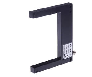 Special design of through-beam sensor. Transmitter and receiver are located in the fork or angular limbs and are perfectly aligned to each other.