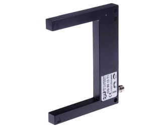 Special design of through-beam sensor. Transmitter and receiver are located in the fork or angular limbs and are perfectly aligned to each other.