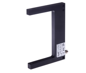 Special design of through-beam sensor. Transmitter and receiver are located in the fork or angular limbs and are perfectly aligned to each other.