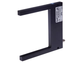 Special design of through-beam sensor. Transmitter and receiver are located in the fork or angular limbs and are perfectly aligned to each other.