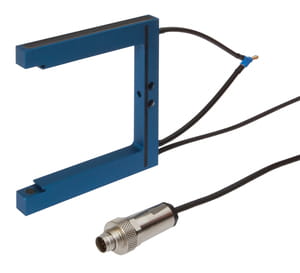 Special design of through-beam sensor. Transmitter and receiver are located in the fork or angular limbs and are perfectly aligned to each other.