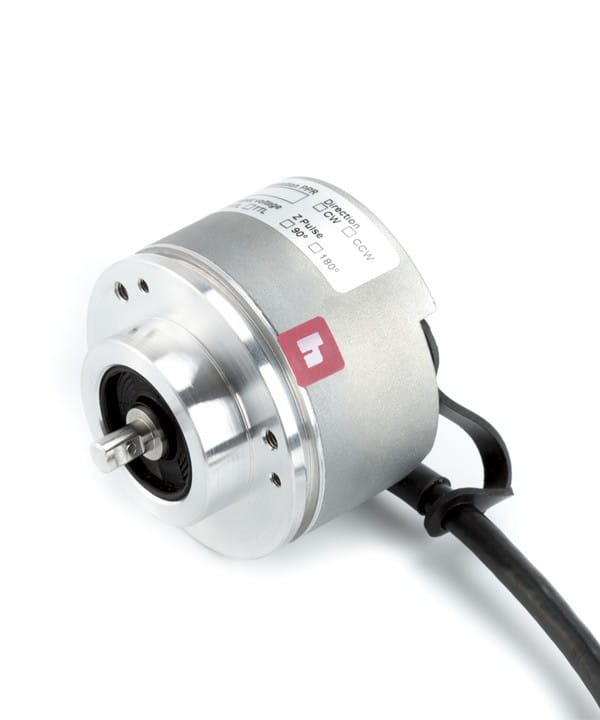 Programmable incremental optical encoder with solid shaft for industrial application.