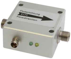 The function of the flow sensor is based on the calorimetric principle. The probe is heated up from the inside a few degrees Celsius in relation to the flow medium, in which it protrudes. When the medium flows, the heat generated in the probe is dissipated through the medium. The temperature within the sensor is measured and compared with the likewise measured medium temperature. From the obtained temperature difference the flow state of each medium can be derived. These sensors are applied in areas such as monitoring of cooling systems, ventilation systems, pump dry running by checking the presence of liquid or gas flows.