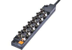 The wiring of sensors and actors is considerably more comfortable with our sensor distribution box. The individual devices are connected with the distrubutor via an M8 or M12 cable that is pre-assembled on both sides. By means of the trunk line the effort for laying and wiring the cables can be reduced significantly. The operating mode display provides information about the sensors operating mode (operatig voltage, switching state). Thus, troubleshooting is simpler, as an overview about the functioning of the connected periphery is directly given.