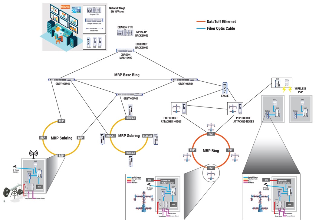Fortunately, with today’s technologies, there are many options for building redundancy into networks, or readily retrofit existing networks as the case may be. This redundancy ensures that if one route goes down, another immediately takes its place. Belden and its portfolio of brands, for example, provide a complete series of products that can help protect every level of devices—from the network infrastructure backbone to the remote sensors at each wellhead. Systems are ruggedized and designed to modularly integrate together and include components such as Belden industrial Ethernet cabling, Hirschmann backbone and field switches, Hirschmann/Tofino Security Appliances and Tripwire Cyber Security Software.