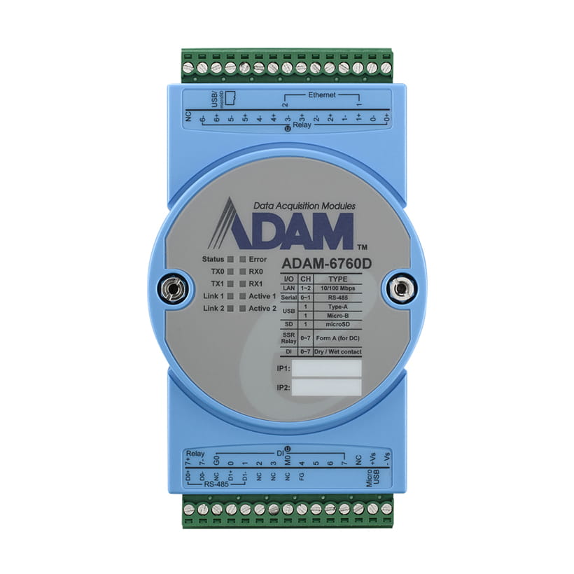 ADAM-6760D-A 8DI/8SSR Relay IoT I/O Gateway with Node-RED