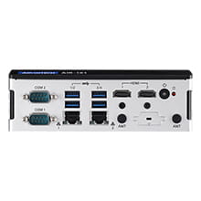 - DIN-Rail AI system with essential I/O ports on front-side bezel