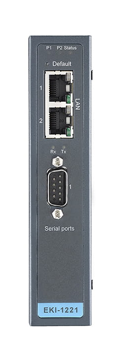 The EKI-1200 series are bi-directional gateways for integrating new and existing Modbus/RTU and Modbus/ASCII serial devices to newer TCP/IP networked-based devices. The EKI-1221 feature two independent Ethernet ports and MAC addresses to provide a redundant networking mechanism.