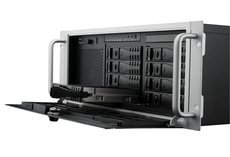 - With optional storage upgrade kit installed, system equipped up to eight hot-swap HDD trays for higher storage capacity requirement