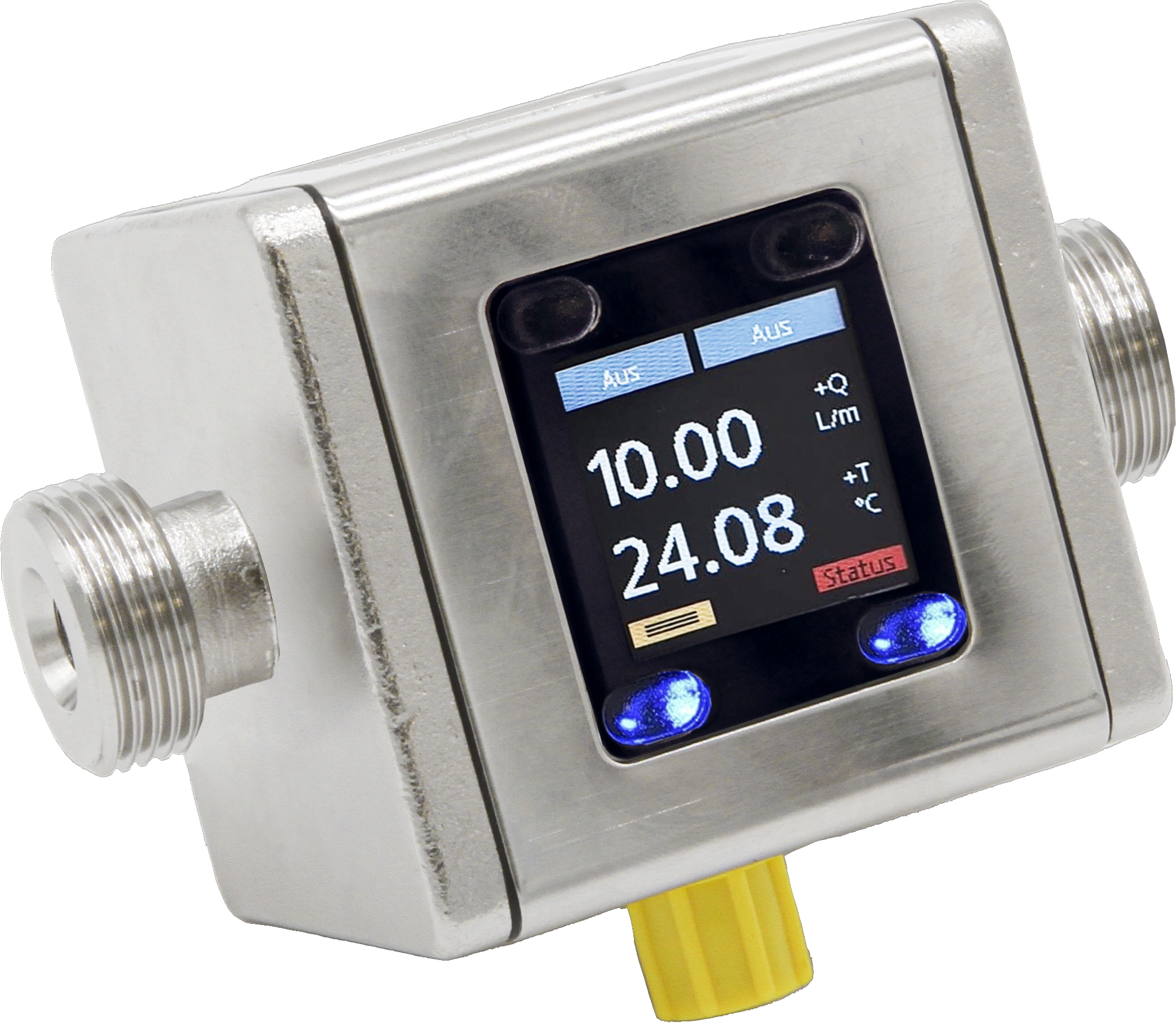SM900021 Flow sensor, water, magnetic-inductive, 72x68x68mm, G 1/2", 19-30V DC, push/pull programmable/configurable, 0/2-10V / 0/4-20mA, M12-connector 4pin, stainless steel 1.4404, pressure resistance 16bar, 0,04-10l/min