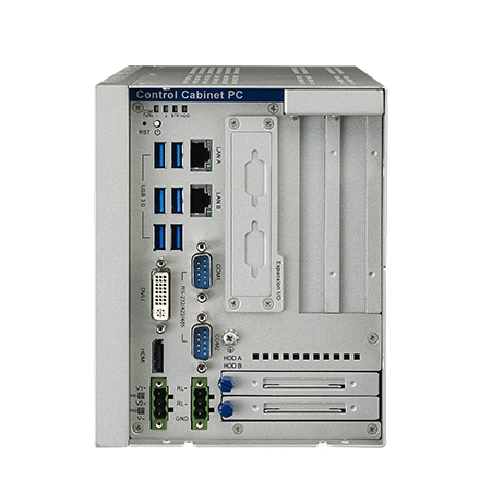 The high-performance fanless control cabinet PC UNO-3283G/ 3285G equipped with a Intel® 6th Gen Core™ i7/ i5/ i3 processor and QM170 PCH chipset, rich I/O including 6 x USB 3.0, 2 x GigaLAN, 2 x RS-232/422/485, and 2 x RS-232 (pin header) ports, as well as DVI-I and HDMI display interfaces, UNO-3283G/ 3285G is designed to deliver high-performance computing and maximum flexibility for industrial automation applications. The provision of two hot-swappable HDD/SSD bays and up to 5 expansion slots (2 x PCIe x8, 2 x PCI) supports the integration of modular peripherals and ensures flexible installation in diverse cabinet configurations. In addition to an exchangeable RTC battery that can be accessed via the removable top cover for convenient maintenance, the system features dual power inputs that ensure a stable power supply.