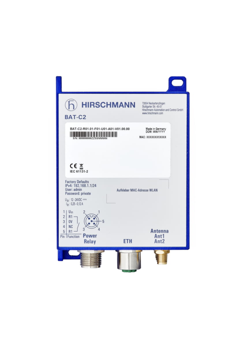 Kompaktowa konstrukcja i niska waga BAT-C2 są niespotykane w tej klasie wytrzymałych przemysłowych urządzeń WLAN. Jest zoptymalizowany do integracji z urządzeniami mobilnymi lub stacjonarnymi. Gdy jest używany jako klient mobilny, zapewnia szybki roaming na poziomie bezpieczeństwa przedsiębiorstwa. W przypadku używania stacjonarnego umożliwia łatwą integrację i automatyczne sterowanie funkcjonalnością AccessPoint w celu zapewnienia dostępu bezprzewodowego lokalnie wokół maszyny.