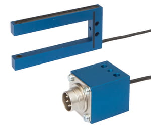 Specjalna konstrukcja czujnika typu nadajnik odbiornik. Nadajnik i odbiornik znajdują się w widełkach lub kątowych częściach i są idealnie do siebie dopasowane..