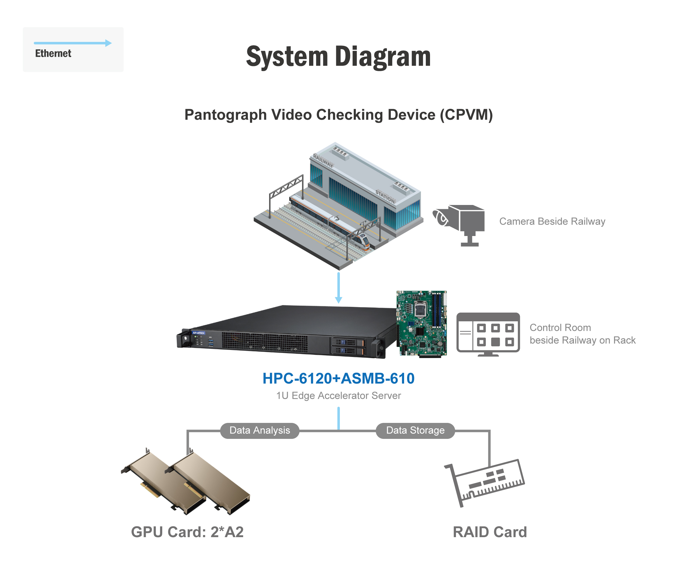 Systemy monitorowania sieci trakcyjnej i pantografów są zwykle instalowane na stacjach kolejowych i w zajezdniach w celu kontroli stanu pantografów, kół pociągów i innych elementów. W odniesieniu do systemu detekcji 6C, system monitora wizyjnego sieci trakcyjnej i pantografu (CPVM) jest zwykle montowany w szafie sterowniczej w pobliżu torów kolejowych. System CPVM musi być wyposażony w wiele szybkich kamer cyfrowych CCD (ang. charged-coupled device) do jednoczesnego przechwytywania i przekazywania obrazów o wysokiej rozdzielczości, wykonywania cyfrowego przetwarzania obrazów oraz wszelkiego rodzaju skomplikowanych analiz danych w celu identyfikacji obszarów zużycia lub uszkodzeń. System CPVM musi być również wyposażony w kartę RAID w celu zapewnienia ochrony pamięci podręcznej. Wszystkie zebrane dane będą przetwarzane i wykorzystywane do prowadzenia inteligentnej konserwacji zapobiegawczej w celu zminimalizowania awarii sprzętu i zapewnienia niezawodnego działania szybkich pociągów pasażerskich i towarowych.
