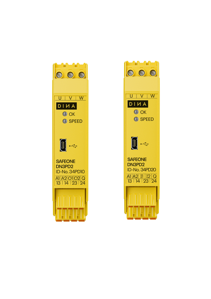 W porównaniu do konwencjonalnych rozwiązań do monitorowania prędkości, kompaktowy monitor prędkości DN3PD2 nie wymaga ani przełączników zbliżeniowych, ani enkoderów inkrementalnych do pomiaru stanu pracy. Nasze innowacyjne rozwiązanie jest idealnym wyborem do modernizacji, jak również planowania najnowocześniejszych maszyn do poziomu wydajności e. Prosta instalacja i przyjazna dla użytkownika parametryzacja sprawiają, że bezpieczeństwo jest dziecinnie proste. Wystarczy szybko ustawić najważniejsze parametry za pomocą naszego oprogramowania, reszta została już zrobiona za Ciebie.